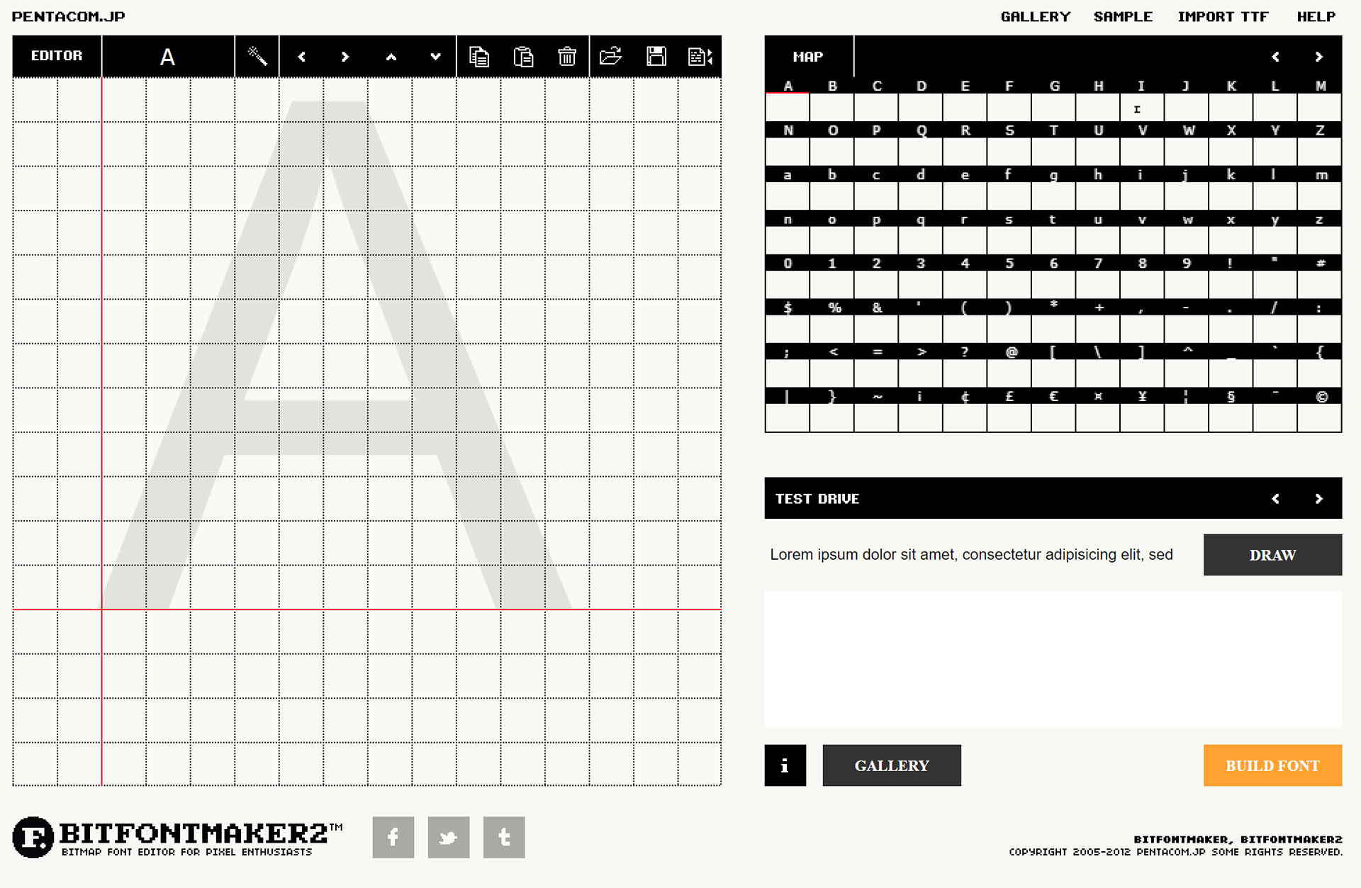 As I went further along with the project, I needed to pick an appropriate font choice but my choices were limited as they needed to be Bitmap-based. After trying a few fonts out to see what would work, I decided to instead create my own. I used a neat program called BitFontMaker2 that allowed me to create pixel fonts online and convert them to an OpenType Layout. Each character was made in a 6x6 grid with the top row left empty and the outermost left and right columns empty as well with a few exceptions. It was an interesting experience for me as I had never created my own font before.